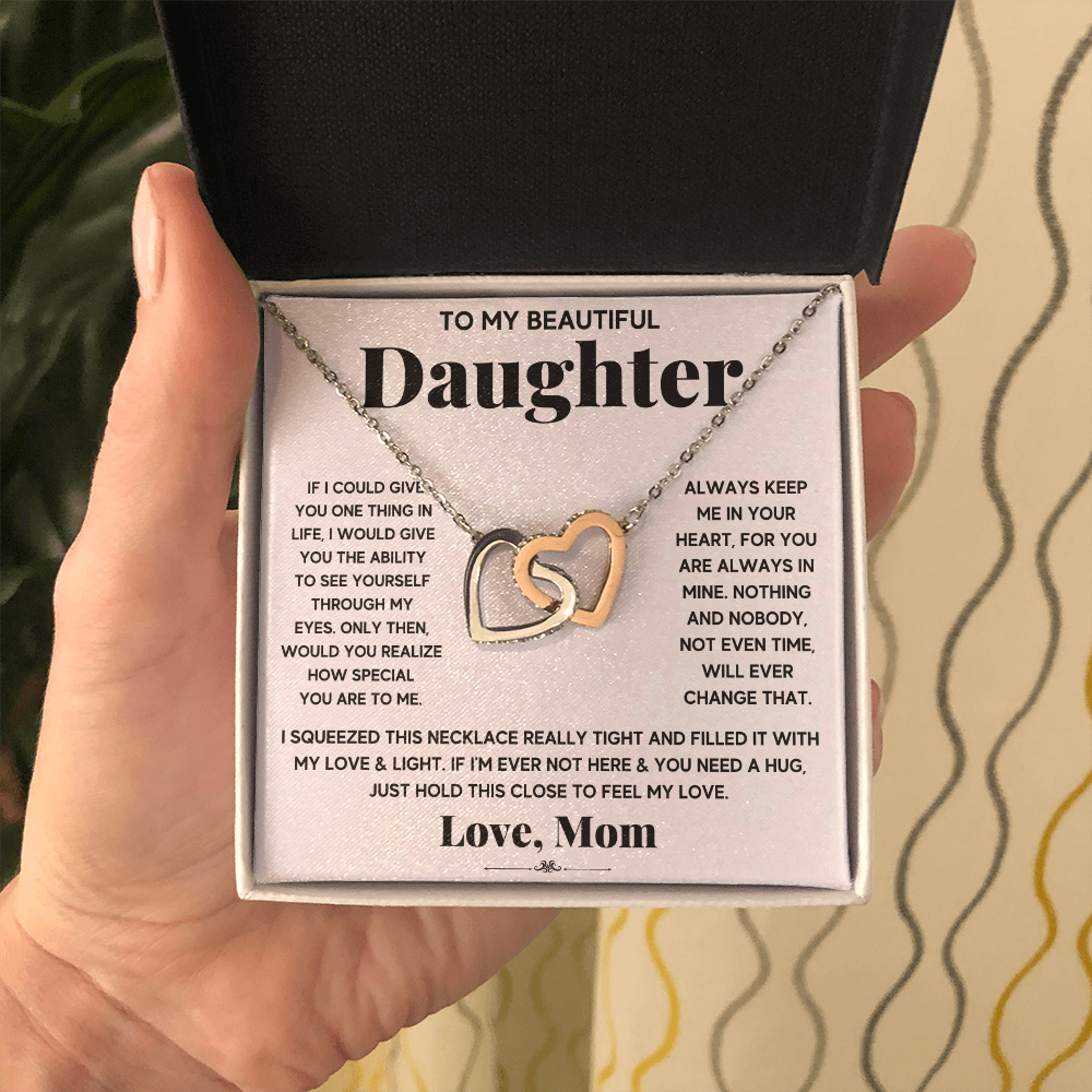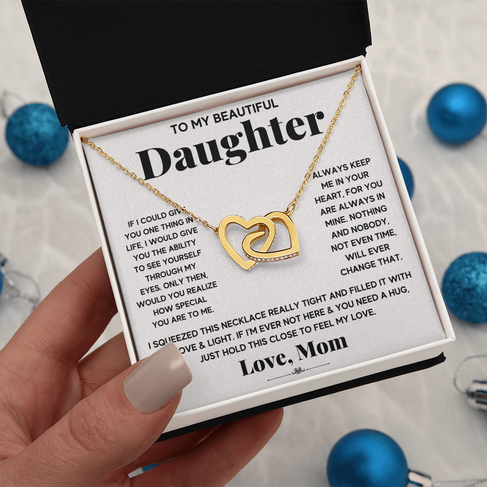 To My Beautiful Daughter - Always Keep Me In Your Heart - Interlocking Hearts Necklace